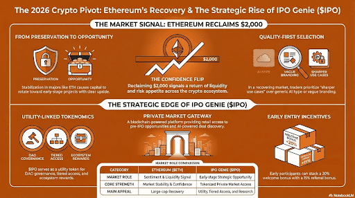 For anyone looking at the title question closely, the logic is straightforward. Ethereum flipping a key level matters because it improves confidence. IPO Genie matters because it offers a more compelling early-stage setup while that confidence rebuilds.